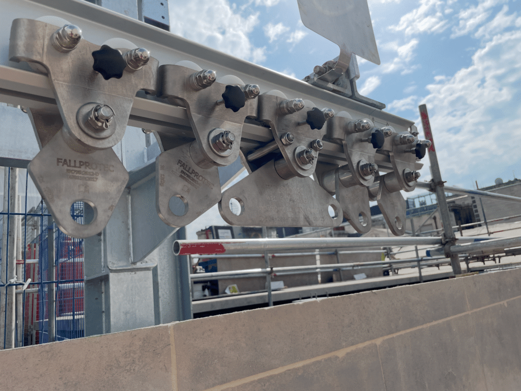 Working on a Grade II listed building presented unique structural challenges. The existing building’s loading allowance required track supports to be positioned at 8.3-metre spans, demanding careful engineering to ensure the façade access systems could be installed without compromising the building’s structural integrity or historic fabric.